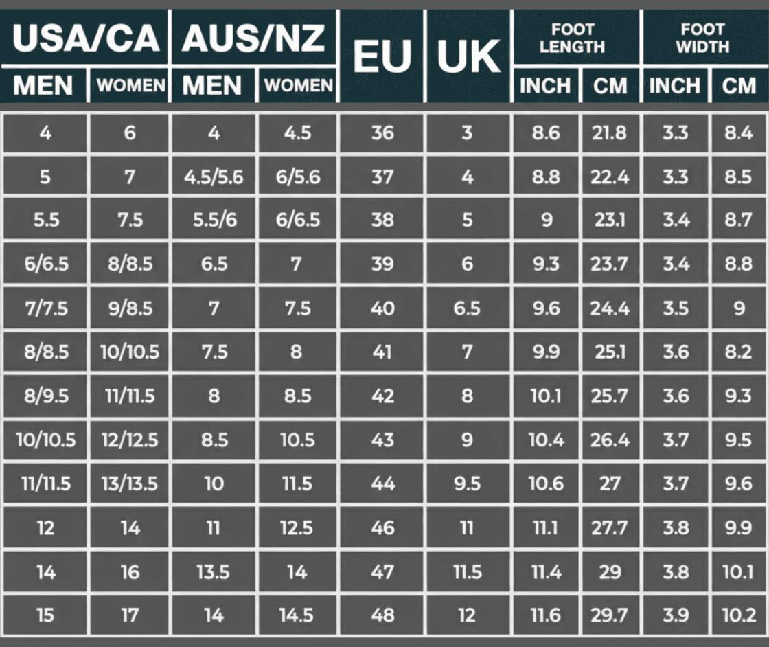 (!) AUS/NZ/EU: Our shoes are produced in US sizes. Check the size chart and choose your size in US size!